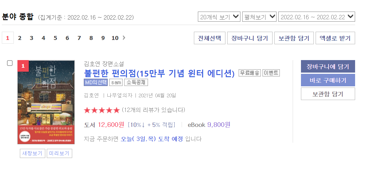 그래도 오랫만에 소설책이라 찍먹에 실패하지 않기 위해 중고책으로 구매하려고 알라딘에 방문해서 검색해봤더니