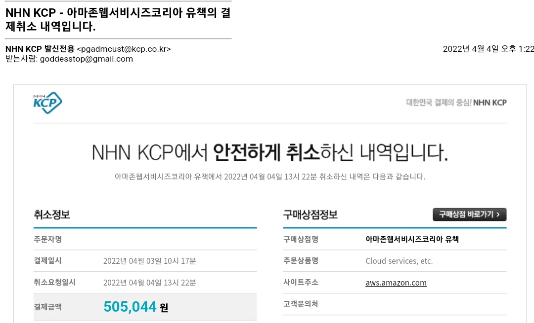칼 환불 해준 AWS 측에 감동. 그리고 제 EC2 서버를 모두 중단시키고 삭제해서 추가로 결제될 여지를