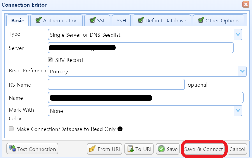 해당 Connection에 대한 정보가 표시되고 Save & Connect하면 내용이 저장되면서 DB에 접속됩니다.