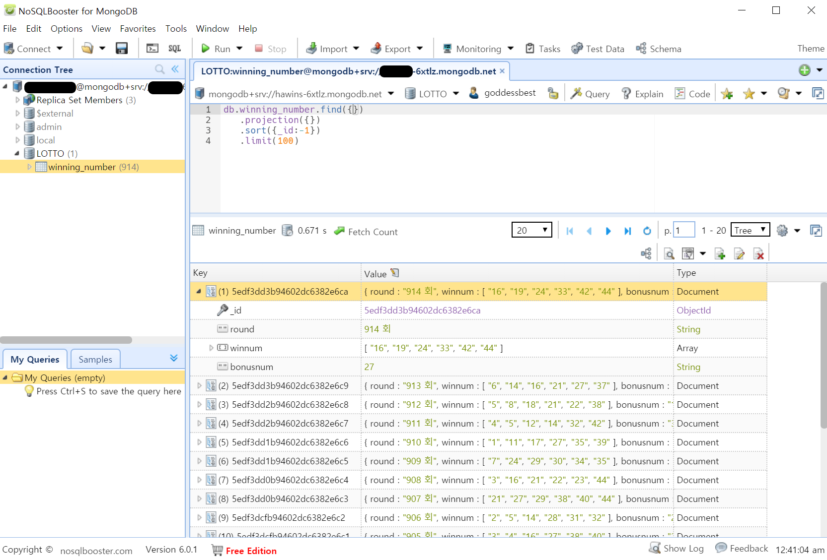 일단 지난 포스팅 처럼 로또번호를 크롤링 해서 DB에 저장했죠. 그게 바로 mongoDB였습니다.
