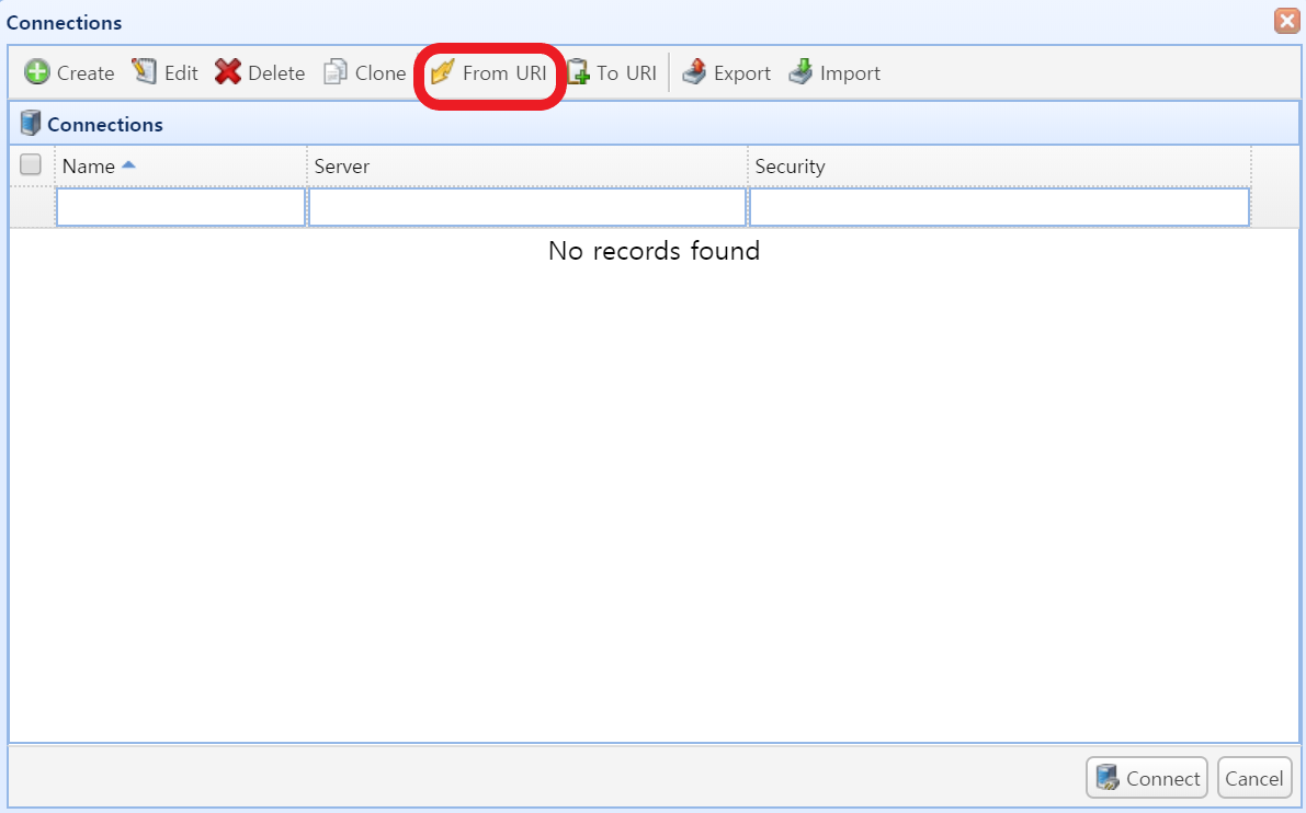 이런 팝업이 뜹니다. 여기서 From URI를 다시 클릭하면