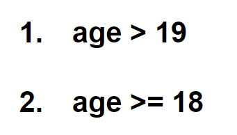 그럼 동작하도록 의도되어 19세 이상의 값을 체크하는 코드라면 아래와 같은 형식일 것입니다.