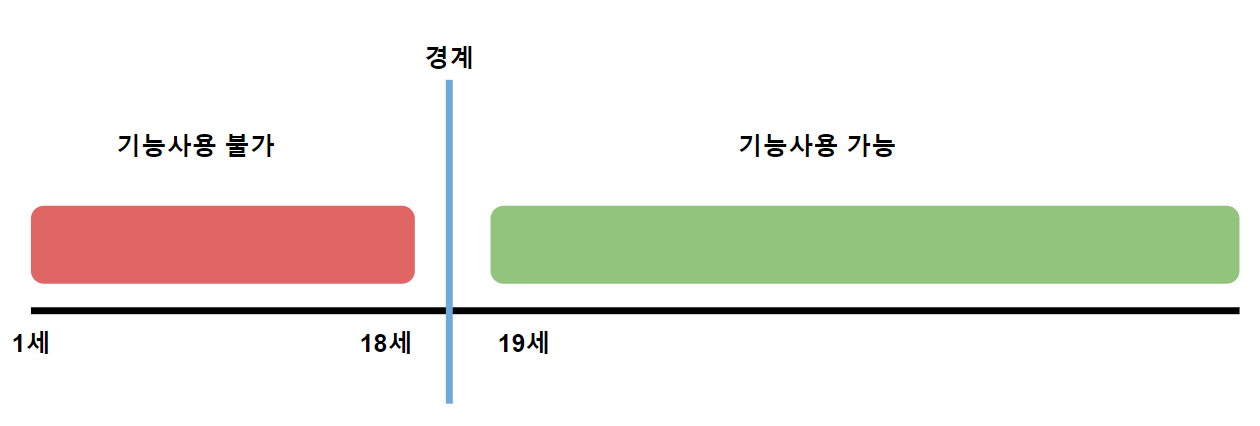 1세부터 18세까지는 이용할 수 없고 19세 이후부터는 이용할 수 있는 것이지요
