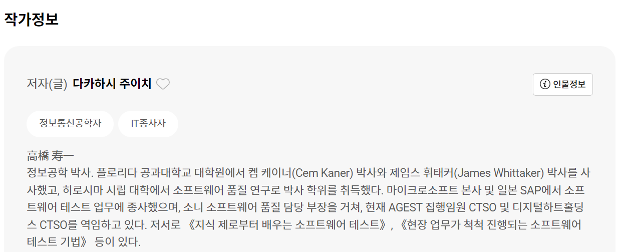 소개에 나온 '제임스 휘태커' 는 한번쯤은 보셨을 책인 '구글은 소프트웨어를 어떻게 테스트하는가' 의 저자 입니다.