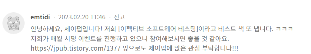 이전 포스팅에 제이펍 관계자 분이 직접 덧글도 달아주셔서