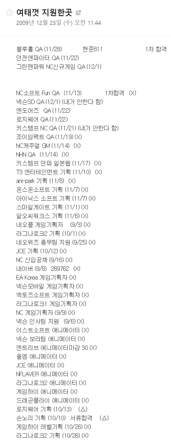 저는 당장 이력서를 써 내려가며 게임회사에 지원할 수 있는 직무는 다 지원을 하게 됩니다.