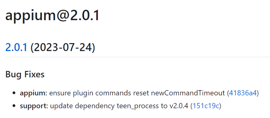 Appium 2.0 이 정식 릴리즈 된 이후 첫번째 업데이트가 진행되었습니다. 이제 2.0.1 버전이 나왔네요.