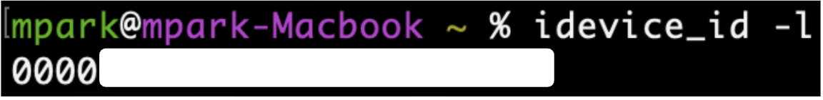 이라고 하실 경우 현재 연결되어있는 기기의 UDID가 표시됩니다.