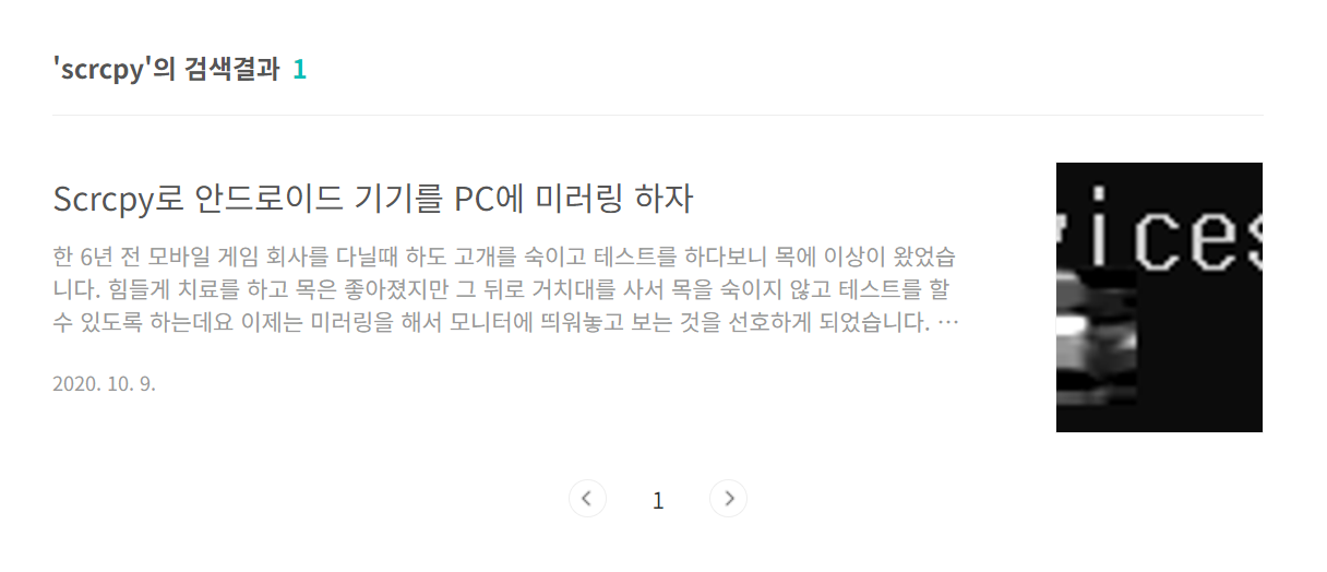 제 블로그를 예로 들어서 "scrcpy"를 검색한다고 하면 이런 식으로 작성하면 되는 것이죠.