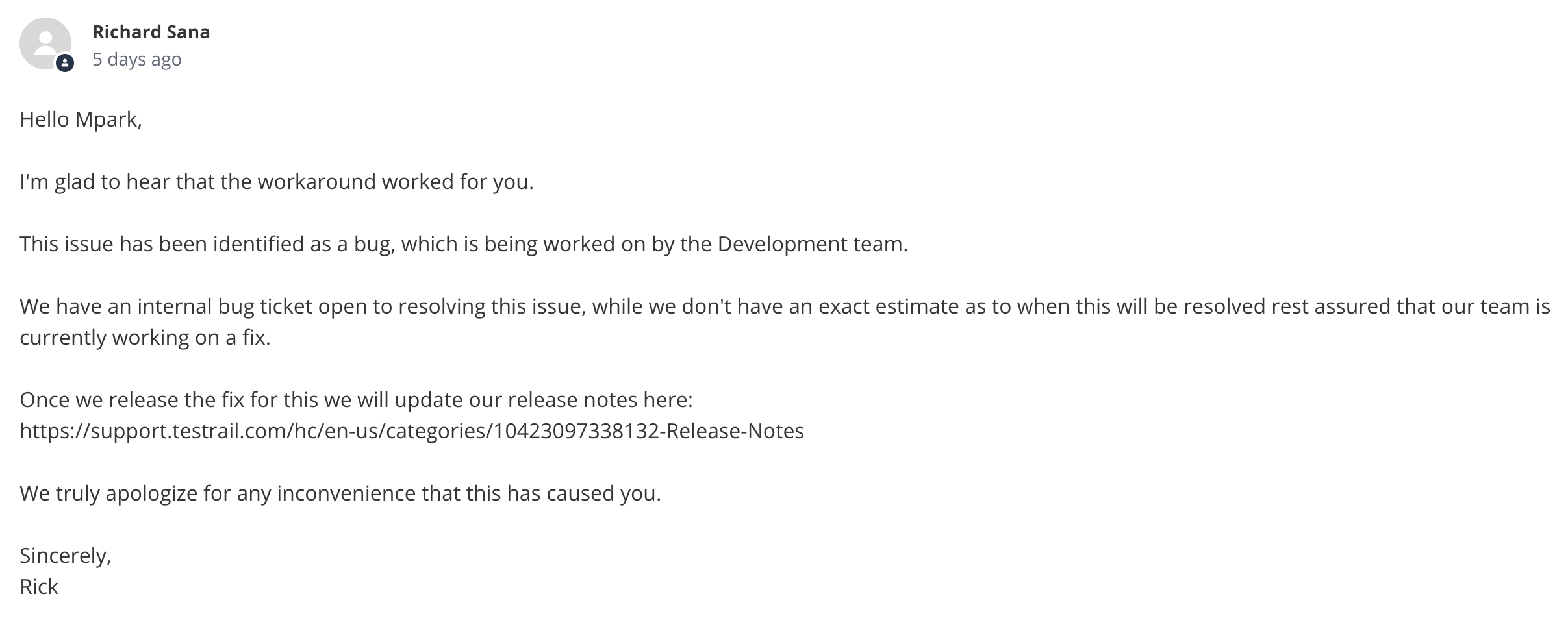 팀에서 이 문제로 열띤 논의를 벌이다가 결국 TestRail에 직접 문의하기로 했습니다.