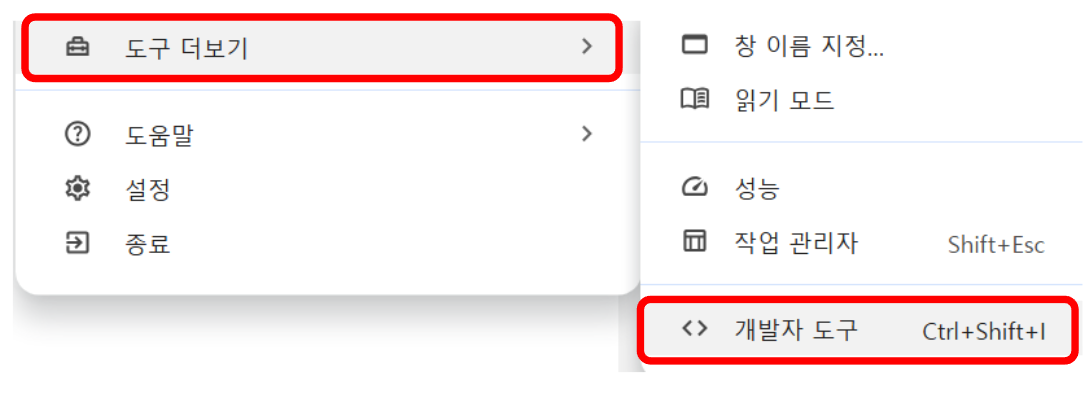 그 뒤에 도구 더보기에서 개발자 도구를 선택합니다.