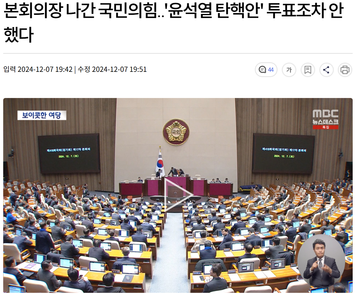 국민에 의해 권한을 받은 국회의원들이 자신들의 존속과 손익을 위해 책무를 져버리고 국민을 배신했습니다.