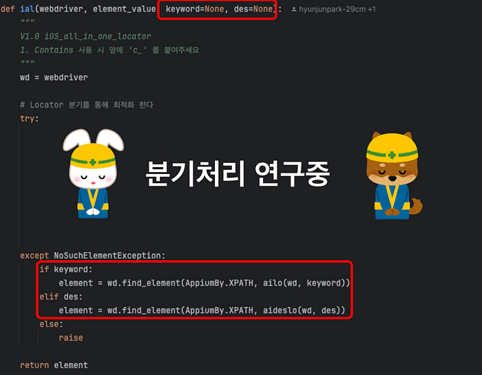 기존 All Locator 코드가 수행되다 NoSuchElementException이 발생할 경우 매개변수의 keyword혹은 des의 값을 체크하여 AI Locator가 호출되도록 하였습니다.