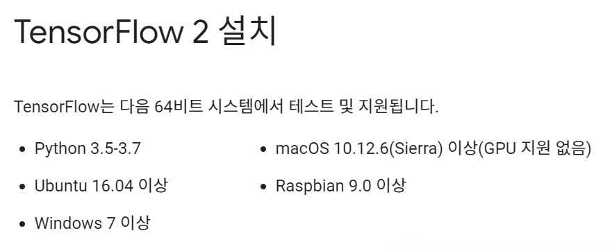 설치 전에 내 환경이 tensorflow를 받아들일 수 있는 환경인지 확인해봅니다.