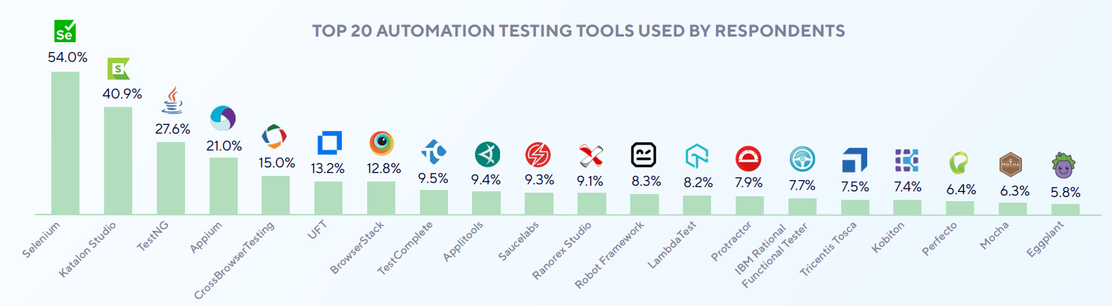 Selenium은 거의 부동의 1위고 (사실 Appium도 selenium기반인데 katalon이라는 툴은 selenium과 appium 기반입니다)