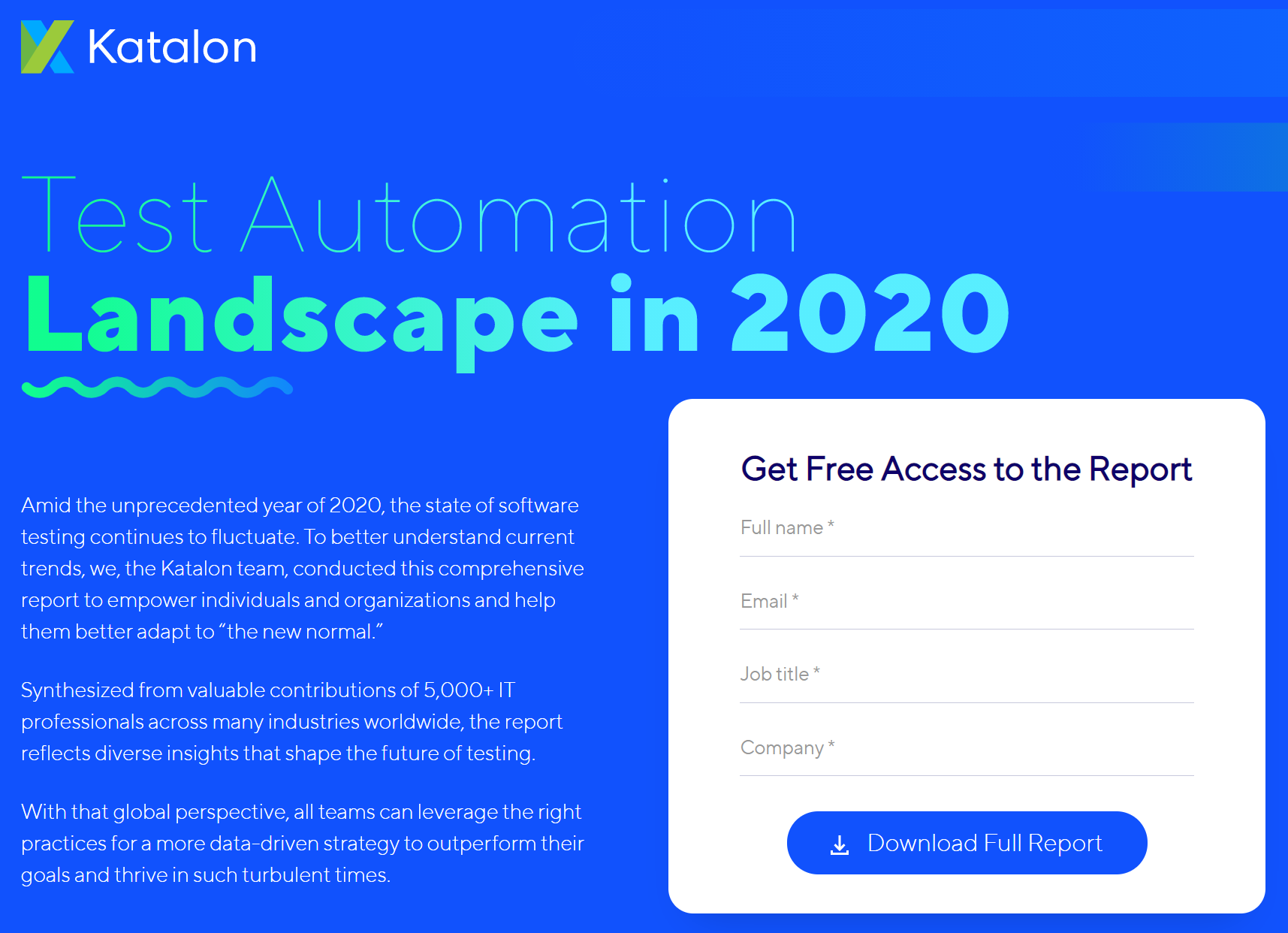 테스트 자동화 툴을 제공하고 있는 Katalon에서 2020년 테스트 자동화의 전반적인 내용을 담고 있는 리포트를 공개 했습니다.